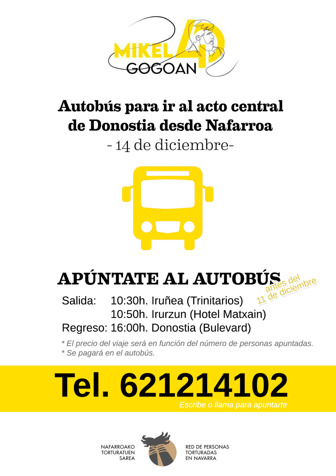 La Red de Personas Torturadas de Nafarroa ha organizado un autobús para asistir al acto de clausura de la dinámica del 40 aniversario de Mikel Zabalza.